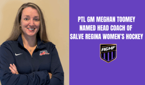 “I’m incredibly thankful for the opportunity to coach and work with PTL and the AGHF,” Toomey said. “It’s been a privilege to be part of such a passionate and growing league that continues to elevate girls’ hockey. My time with PTL and the AGHF has helped prepare me for this next incredible opportunity to lead a strong Division III college program. I want to especially thank Patrick Choules, Black Bear Sports Group and Nikki Miller; AGHF Commissioner and an incredible advocate for girls’ hockey, for their support the last two years, and Lauren Patterson and Tim Chase from PTL for their partnership, leadership, and trust throughout my time with the program. I’m grateful for the experiences, relationships, and growth that came from this chapter, and I look forward to seeing many current and future AGHF players continue their hockey journeys at the collegiate level.”